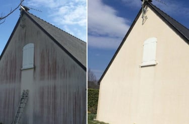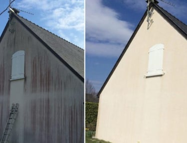 🔹 Nettoyage haute pression et démoussage : Élimination des salissures, mousses et lichens pour une façade propre et saine.